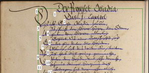 Das Ergebnis ist schon ziemlich gut. Je nachdem wie sauber geschrieben ist, ist 95% Zuverlässigkeit durchaus ein Normalwert. Natürlich gibt es auch hier Ausreißer, die die KI nicht hinbekommt. Insbesondere die frühneudeutsche Sprache, was (nicht vorhandene) Rechtschreibung und das Vokabular betrifft, aber auch die dichterische Textgattung machen es wohl schwer, die Worte zu richtig zu interpretieren. Dass hier ausgerechnet die Überschrift "Der Prophet Obadia", die gefühlt am besten lesbar ist, zu einem Kauderwelch verändert wurde, ist kurios.